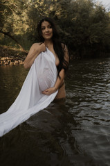 Wearing nothing except a white sheet at times, Kate stood by the tranquil waters, her presence reflecting both strength and grace. With each soft breeze and the gentle glow of twilight, the session captured the essence of her femininity and the quiet power of bringing new life into the world.
